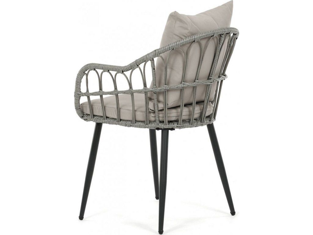 Zahradní židle s kovovým rámem a šedým umělým ratanem nabízí pevné a stabilní provedení vhodné pro venkovní použití. Sedák i opěradlo jsou vybaveny polstrováním potaženým voděodolnou látkou, která zajišťuje pohodlí i odolnost vůči povětrnostním vlivům. Konstrukce židle je navržena tak, aby poskytovala dostatečnou oporu a komfort při posezení na terase či zahradě. Čtyři kovové nohy s práškovým lakem zaručují stabilitu a dlouhou životnost. Díky neutrální šedé barvě se židle snadno kombinuje s různými zahradními sestavami.