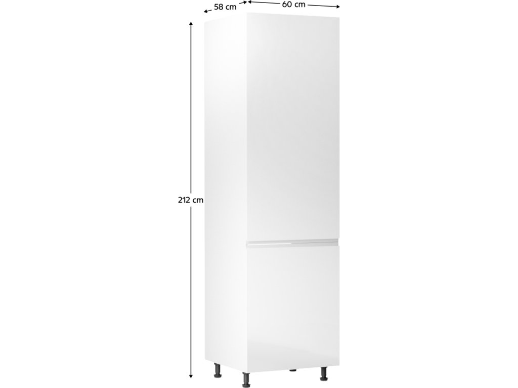 Potravinová skříňka, Aurora D60R Provedení: DTD laminové / MDF Barva: bílá / bílá extra vysoký lesk Rozměry (ŠxHxV): 60x58x212 cm Tloušťka materiálu: 15 mm Pracovní deska není součástí skříněk. Je možné si doobjednat pracovní desku v provedení dub lefkas tmavý tloušťky 38 mm za 1.350 Kč / bm. Možnost dokoupit dřez LAY ON. Ke každé dolní skříňce, kromě D25PZ, je třeba doobjednat 2ks úchytů na sokel- cena 20 Kč. Spodní skříňky jsou dodávány včetně dolní lišty, avšak přesný rozměr, který potřebujete, je třeba uvést do poznámky v objednávce. Pokud rozměr neuvedete, může se stát, že vám sokl nebude dodán.