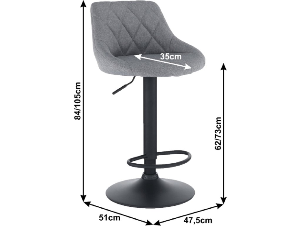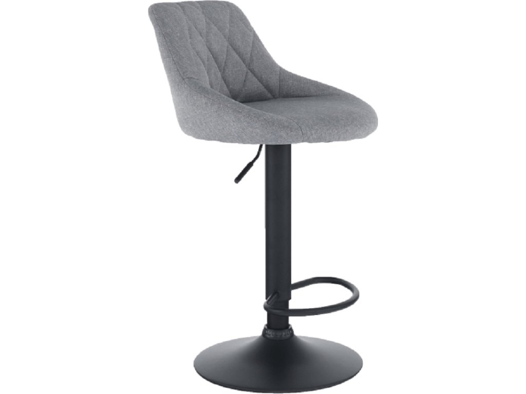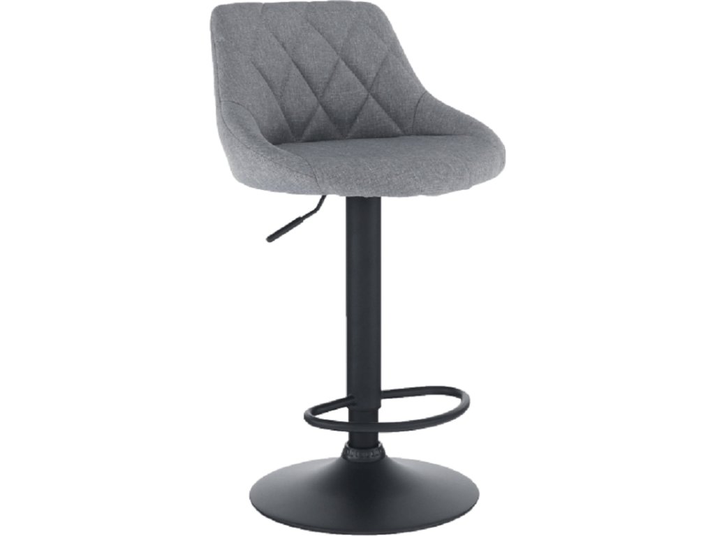 Barová židle TERKAN Materiál látka / kov Oděruodolnost textilie podle testu Martindale: 65 000 oděrek Barva: šedá / černá Rozměry (ŠxHxV): 47,5x51x84-105 cm Výška sedu: 62-73 cm Hloubka sedu: 35 cm Nosnost: 100 kg