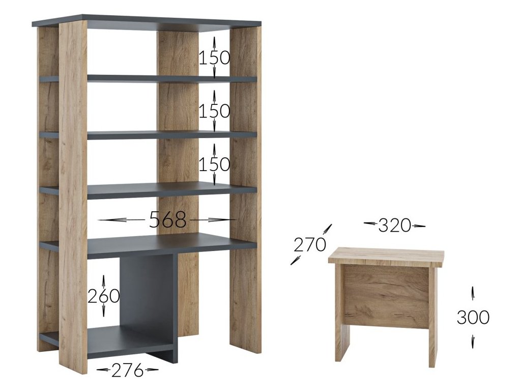 Policový botník se stoličkou v moderním provedení. Stoličku lze schovat do botníku. Botník je vyroben z kvalitního LTD v barvě antracit. Dodáváme v demontovaném stavu.Doplňkové parametry