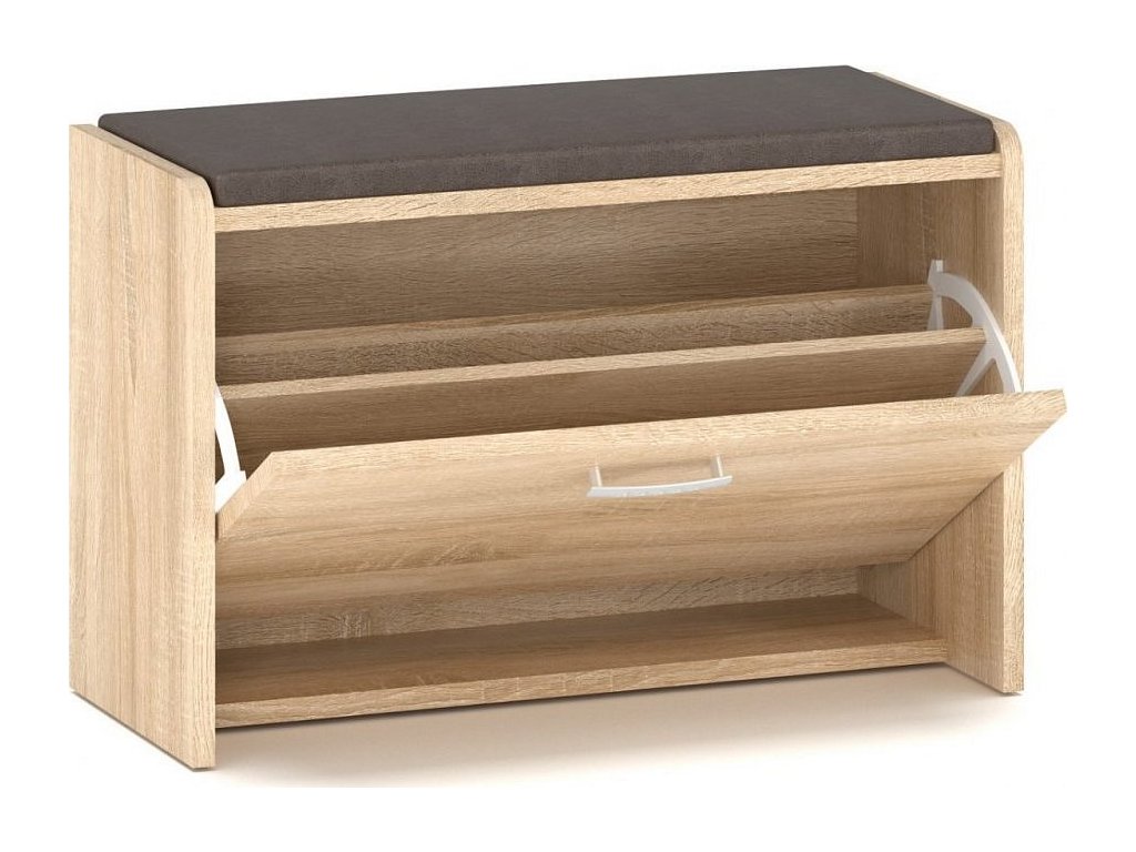Botník s výklopnými dvířky a čalouněným sedákem. Korpus i dvířka jsou z kvalitní LTD v barevném provedení dub sonoma. Dodáváme v demontovaném stavu.Doplňkové parametry