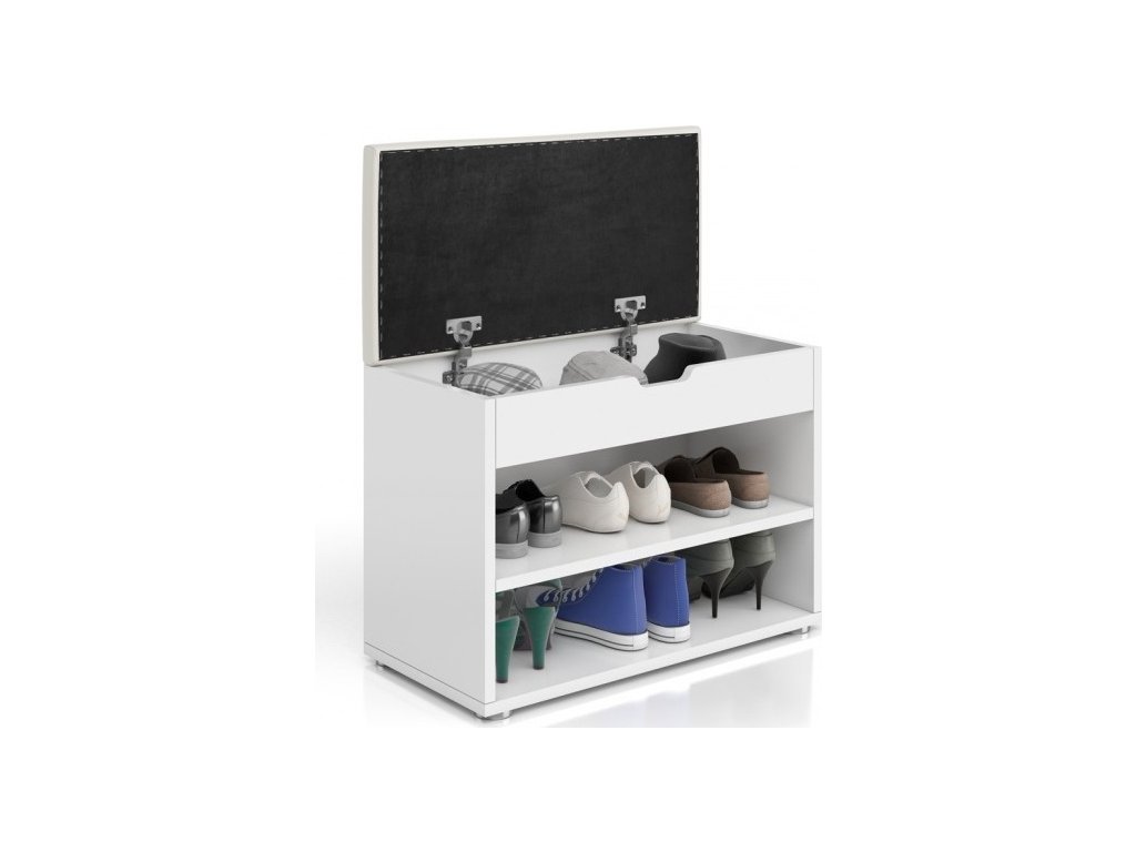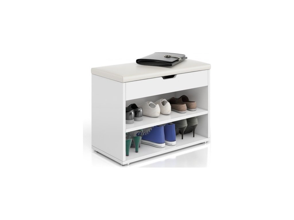 Botník v moderním provedení. Korpus z lamina je v barvě matná bílá, přední strana z MDF také v bílém matu. Lamino i MDF jsou odolné vůči vysokým teplotám, poškrábání a nárazům. Botník obsahuje praktický úložný prostor, sedák je čalouněný ekokůží. Dodáváme v demontovaném stavu.Doplňkové parametry