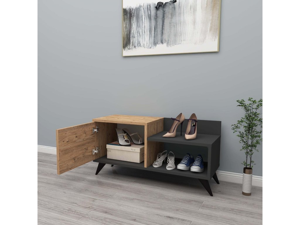Botník nabízí moderní design a praktické uspořádání, díky kterému bude vaše předsíň vždy přehledná a stylová. Tento botník je vybaven plnými dvířky a odkládací policí, což poskytuje dostatek úložného prostoru pro vaši obuv a další doplňky. Ideální volba pro všechny, kteří hledají kombinaci funkčnosti a estetiky.