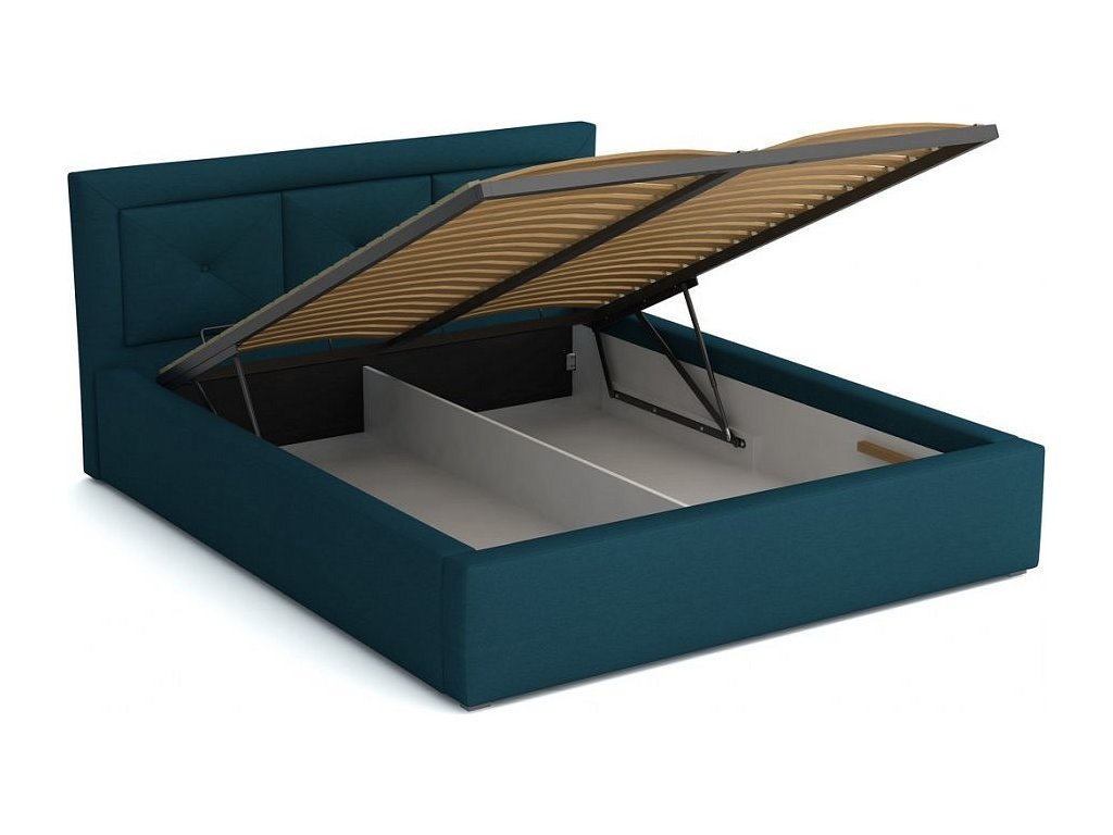 Elegantní postel s vysokým prošívaným čalouněným čelem a ozdobnými knoflíky. Konstrukce je potažena látkou v tyrkysové barvě. Nožky jsou plastové v šedé barvě. Rošt je v ceně, ale matrace je potřeba doobjednat, vhodný rozměr 180 x 200 cm nebo 2 x matrace 90 x 200 cm. Za příplatek je možné objednat postel s kovovým zvedacím roštem, tím vznikne pod ložnou plochou úložný prostor. Cena za postel s kovovým roštem na vyžádaní. Změnu roštu je nutné zadat při první objednávce. Výška bočnice od země je 34 cm, výška roštu od země je cca 24 cm. Dodáváme v demontovaném stavu.Doplňkové parametry