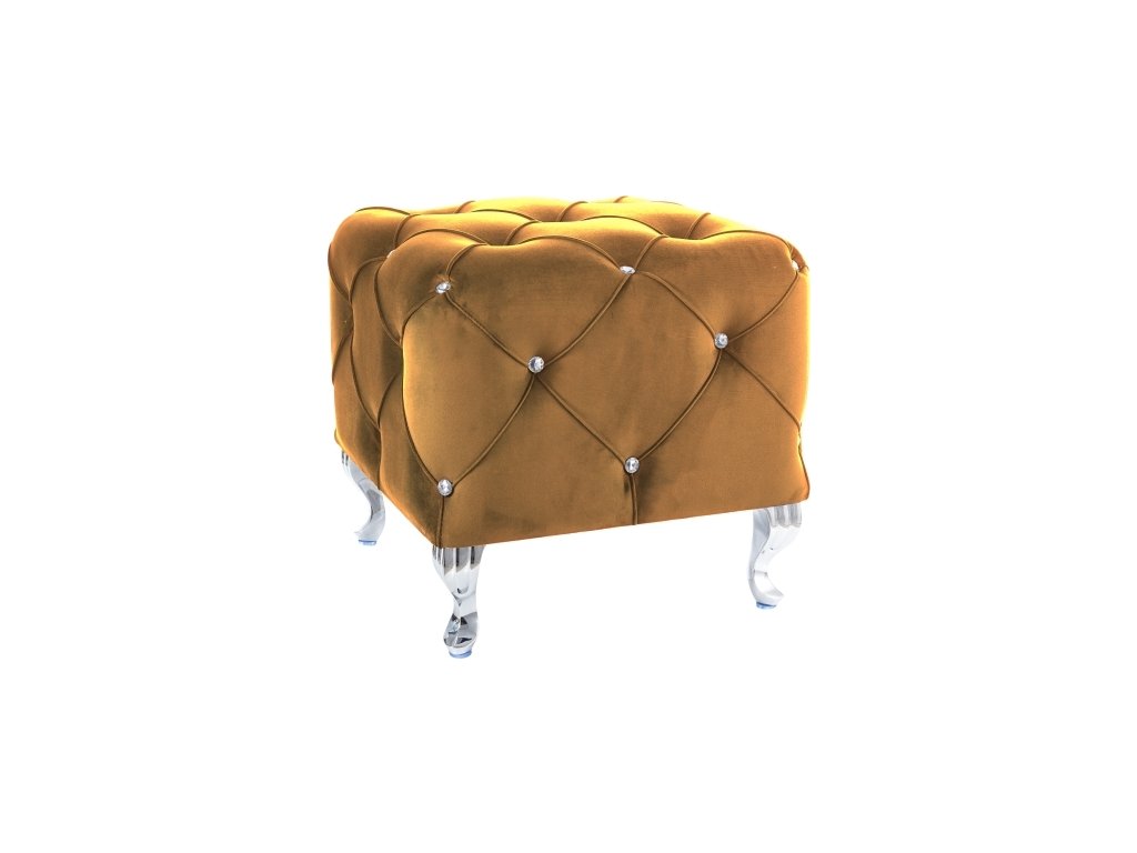 Taburet BESTI K VELVET žlutá curry/stříbrná