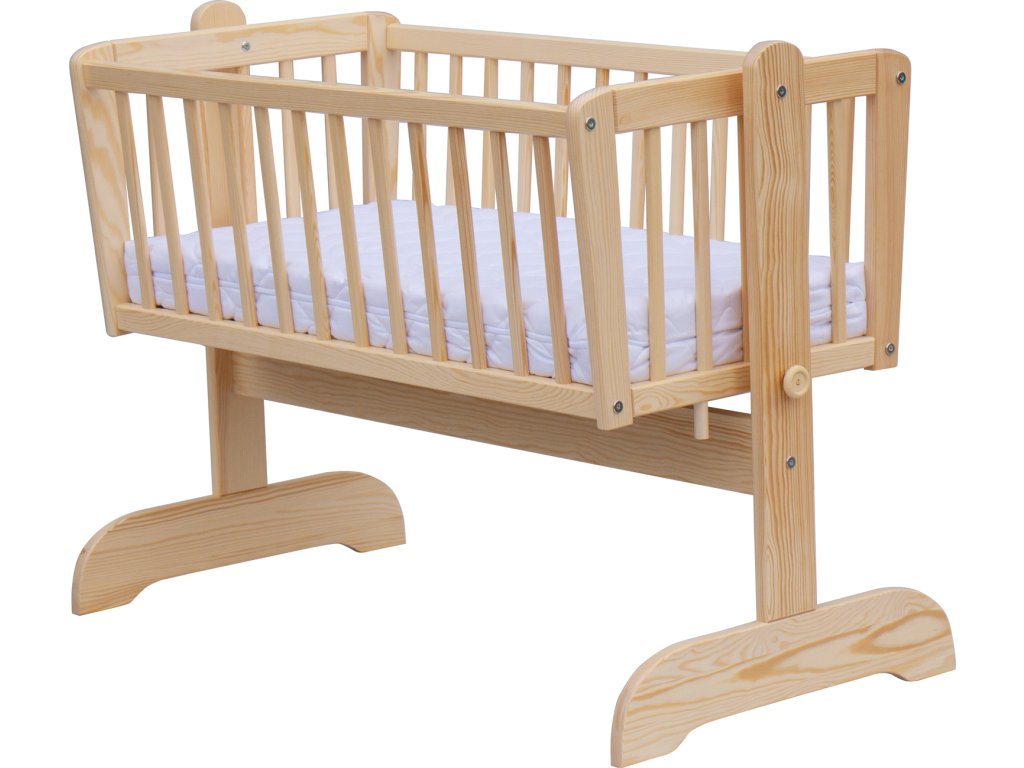 Krásná kolébka z borovicoveho dřeva je ideální pro usínání miminek.