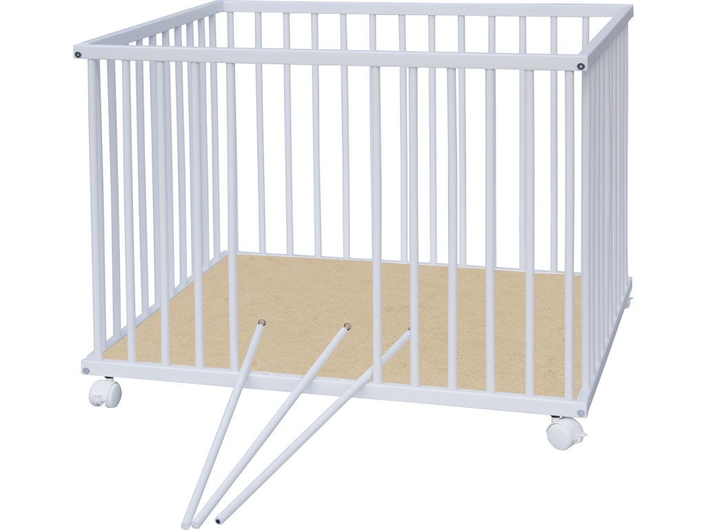 Dno je vyrobeno z MDF pro snazší údržbu. Otvory na kolečka jsou předvrtány, ale kolečka nejsou součástí ohrádky, lze si je doobjednat z naší nabídky. K ohrádce si můžete vybrat z nabídky hracích dek.