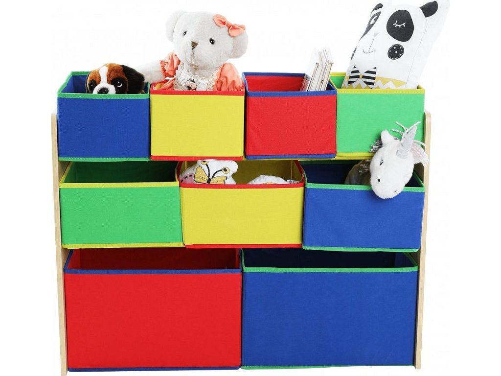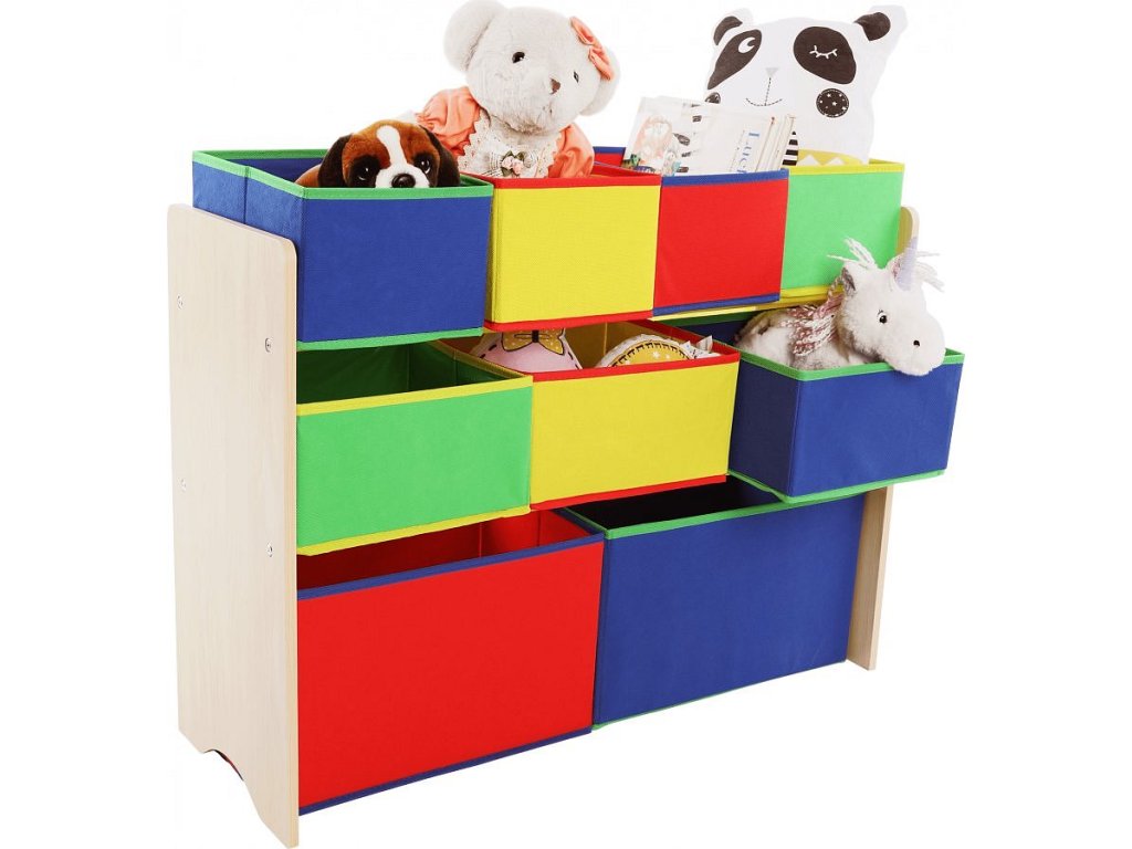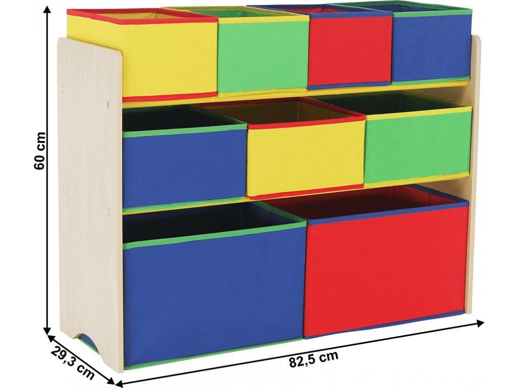 Materiál: DTD laminovaná / kov / látka Barva: vícebarevná Rozměry (ŠxHxV): 82,5x29,3x60 cm Trojpoličkový látkové police S látkovými košíky kovové tyče praktický Na hračky, knihy, školní potřeby, oblečení Dodávané v demontu