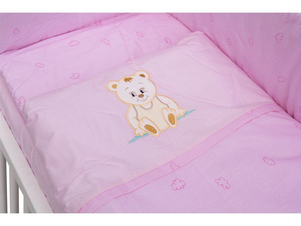 Dětská postýlka Baby Scarlett bílá s kompletní výbavou - Méďa růžová - 90 x 41 cm