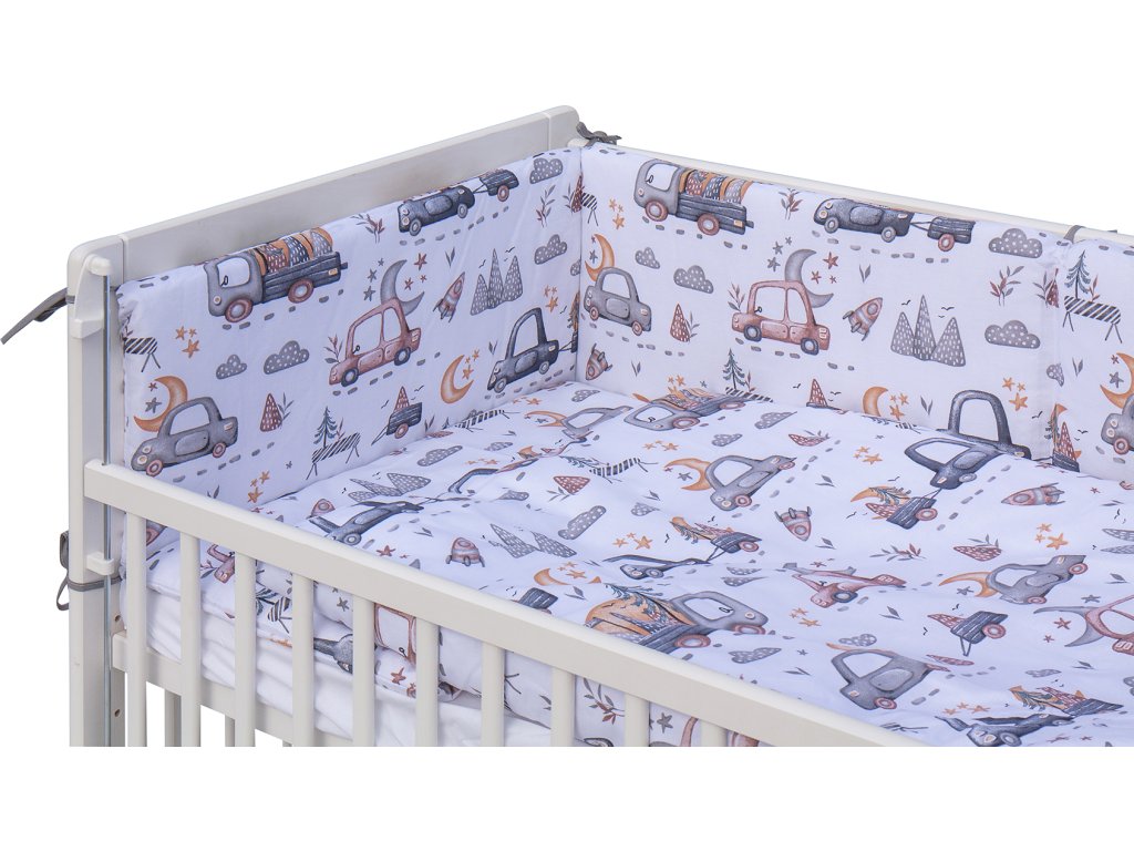 Dětská postýlka s kompletní výbavou Scarlett 120 x 60 cm - Autíčka - šedá