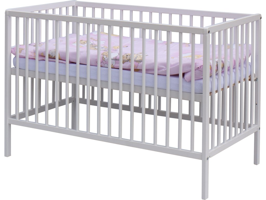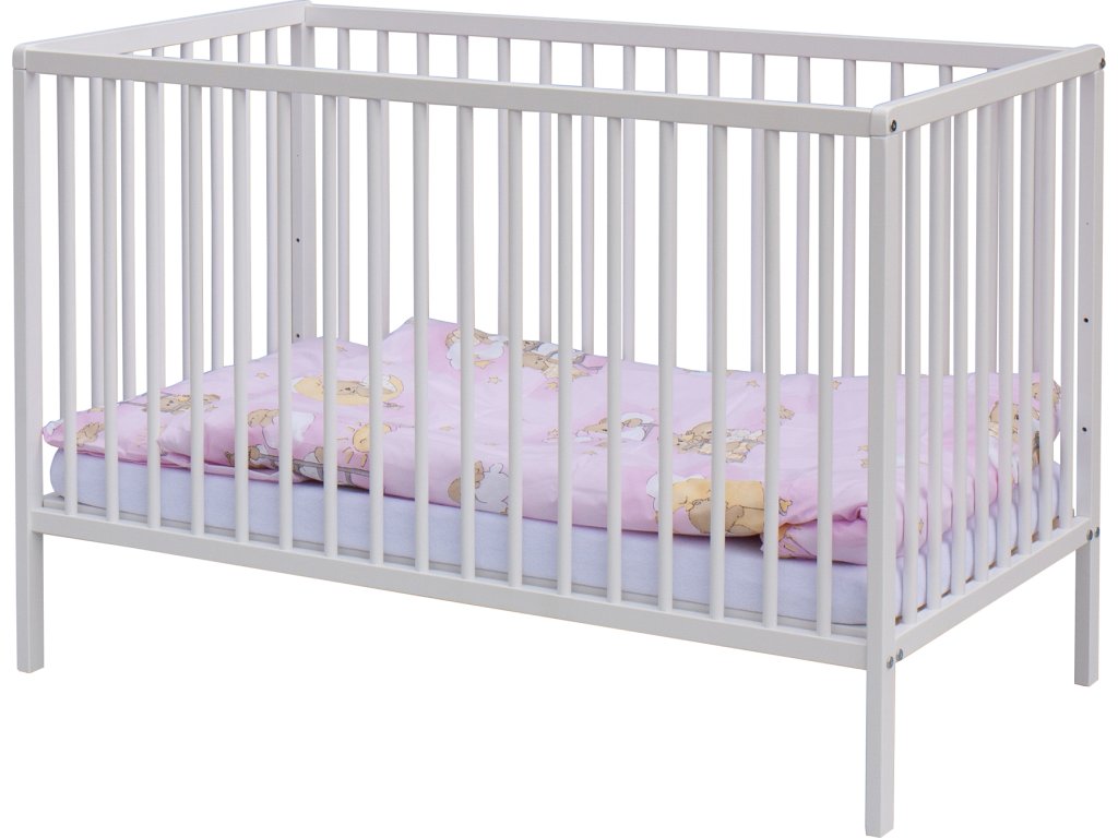 1. Dětská dřevěná postýlka 120 x 60 cm - bílá, masiv buk, 3 vyndavací příčky, 2 polohy roštu