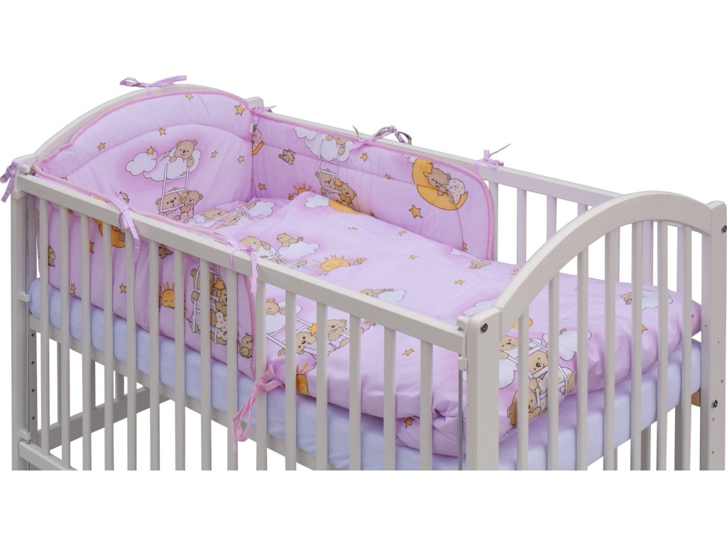 Dětská postýlka s kompletní výbavou Scarlett 120 x 60 cm - Mráček - růžová
