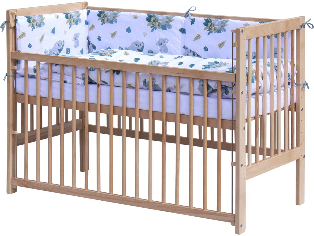 1. Dětská dřevěná postýlka 120x60 cm - přírodní, masiv buk, stahovací bok, 6 poloh roštu