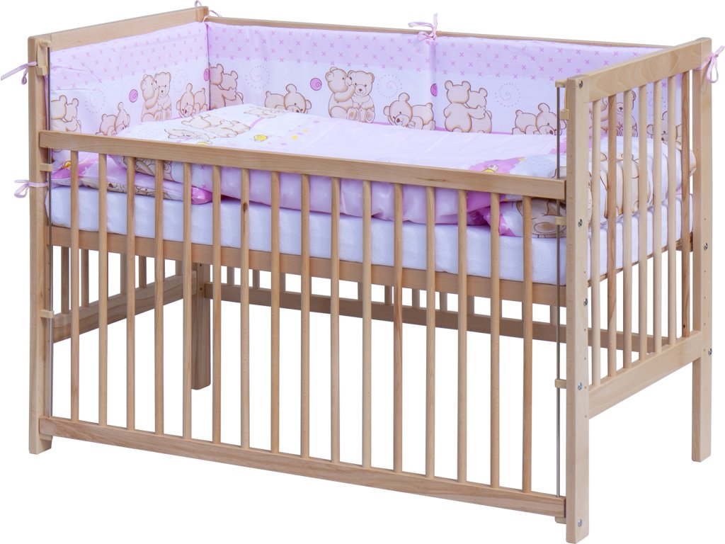 1. Dětská dřevěná postýlka 120x60 cm - přírodní, masiv buk, stahovací bok, 6 poloh roštu