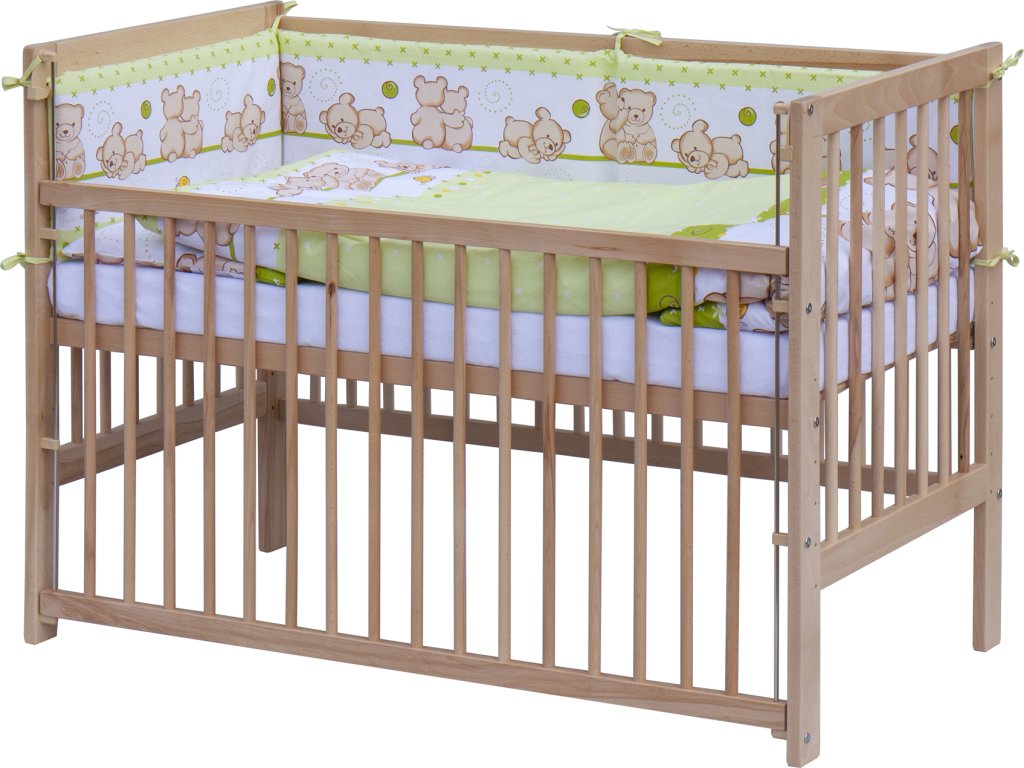 1. Dětská dřevěná postýlka 120x60 cm - přírodní, masiv buk, stahovací bok, 6 poloh roštu