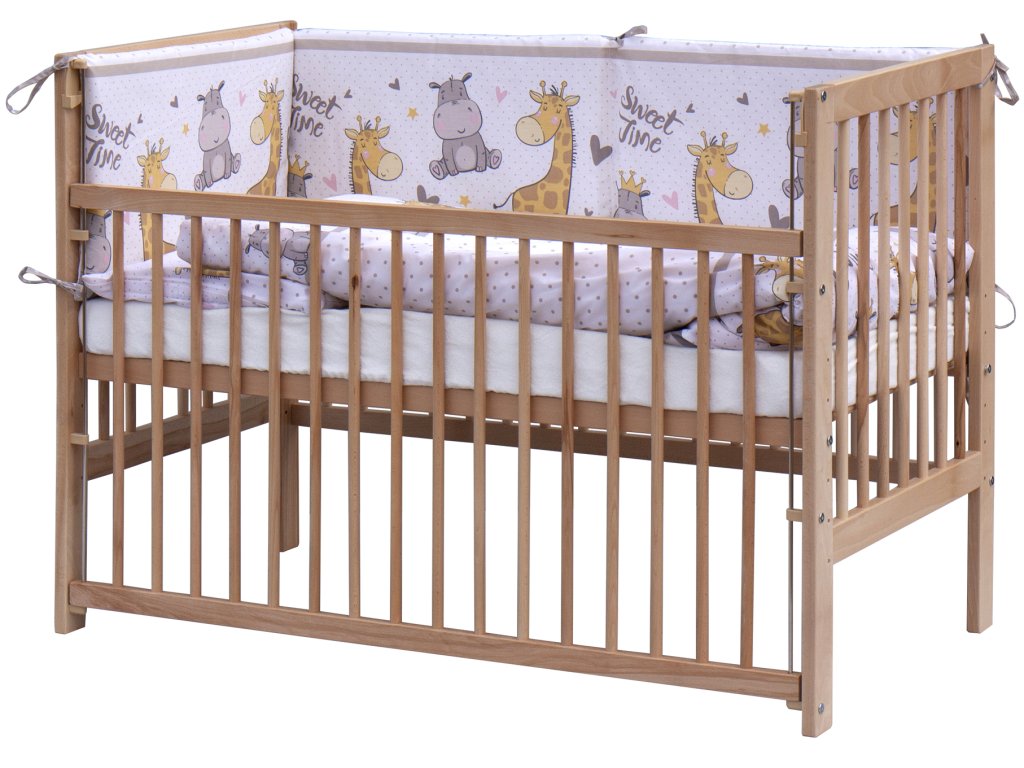 1. Dětská dřevěná postýlka 120x60 cm - přírodní, masiv buk, stahovací bok, 6 poloh roštu