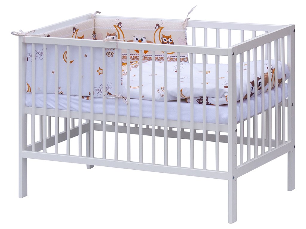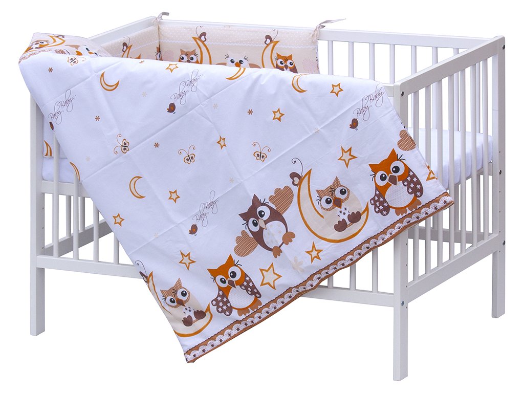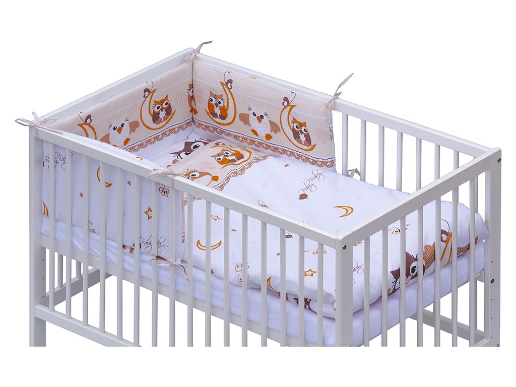 Dětská postýlka s kompletní soupravou povlečení a doplňků Sovička - béžová