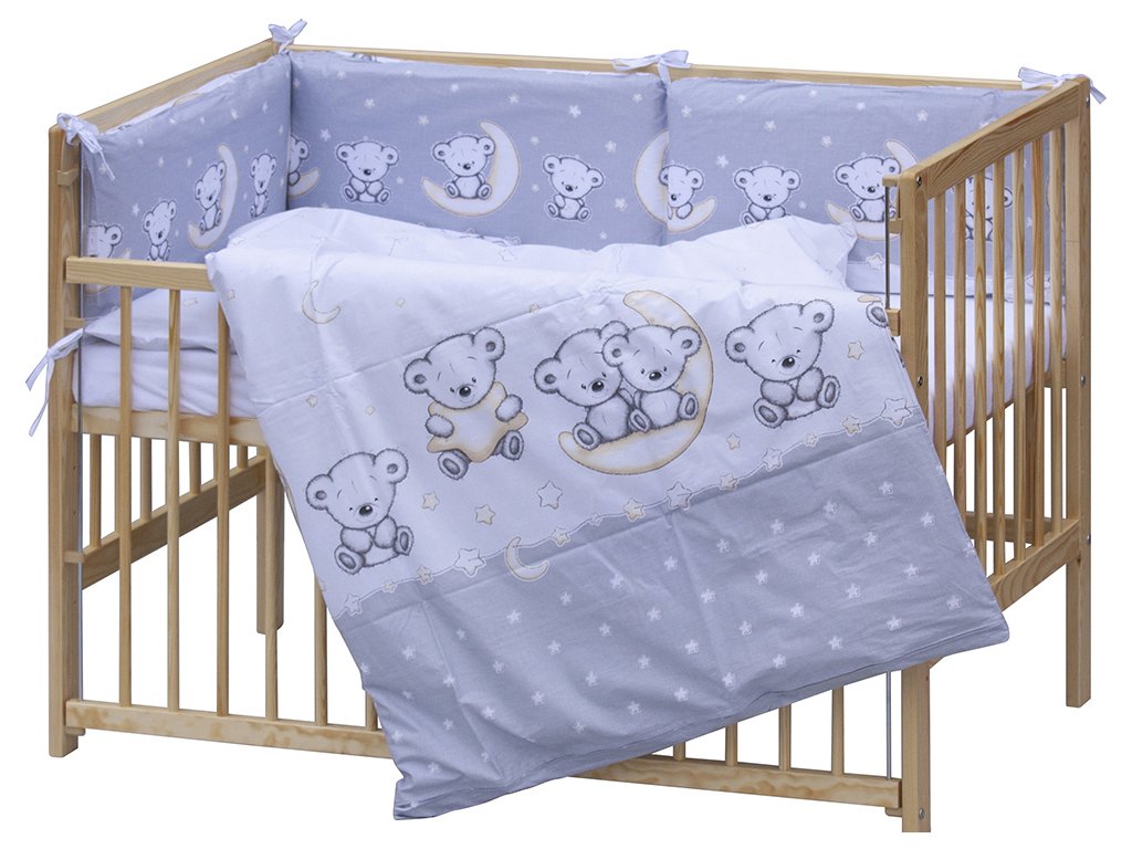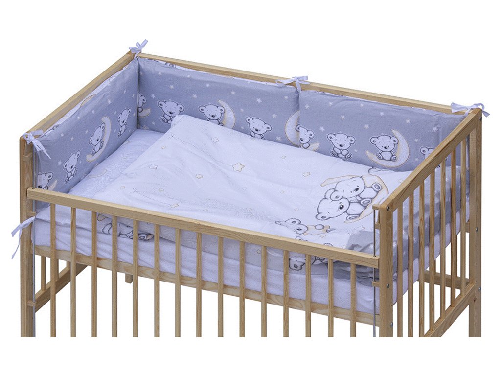 Dětská postýlka s kompletní soupravou povlečení a doplňků Toro - šedá