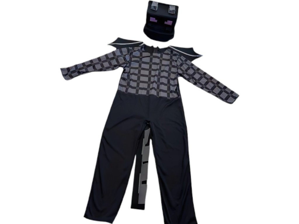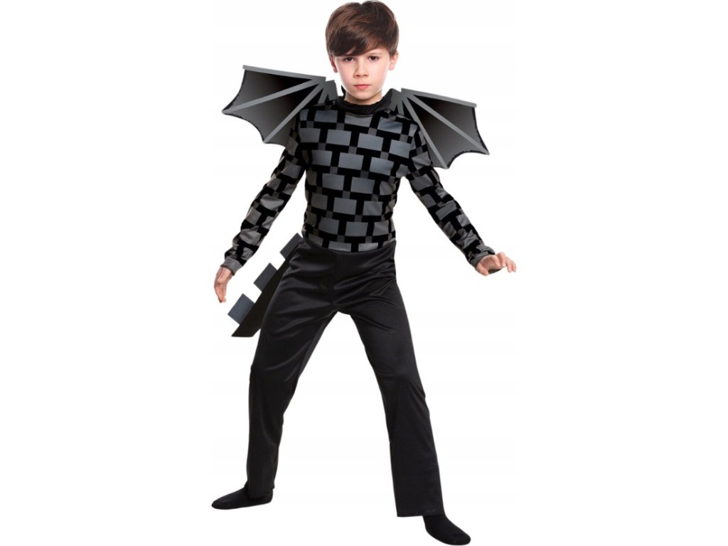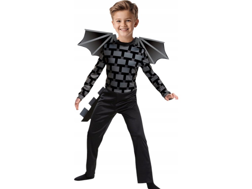 Tento dětský kostým představuje postavu Ender Dragona, známou z populární hry Minecraft, a je ideálním převlekem na karnevaly, tematické oslavy nebo Halloween. Kostým je navržen tak, aby věrně zachycoval charakteristické rysy Ender Dragona, včetně černé, čtverečkované textury typické pro svět Minecraftu. Díky svému designu a detailům, jako jsou látková křídla a maska, umožňuje dětem snadno se vžít do role tohoto ikonického draka.