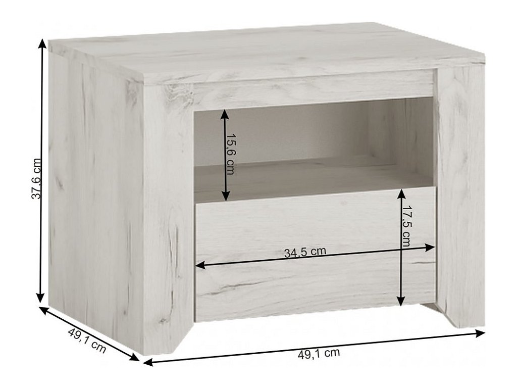 Noční stolek Typ 95 ze sektorové sestavy ANGEL Materiál: laminovaná DTD Barva: bílá craft Rozměry (ŠxHxV): 49,1x40,2x37,6 cm Tloušťka materiálu: 16-28 mm Výška spodního prostoru od podlahy: 2,5 cm Dodávané v demontu