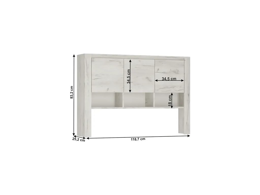 Přídavná police Typ 95 k psacímu stolu nebo komodě ze sektorové sestavy ANGEL Materiál: laminovaná DTD Barva: bílá craft Rozměry (ŠxHxV): 118,7x25,2x83,2 cm Tloušťka materiálu: 16 mm Dodávané v demontu