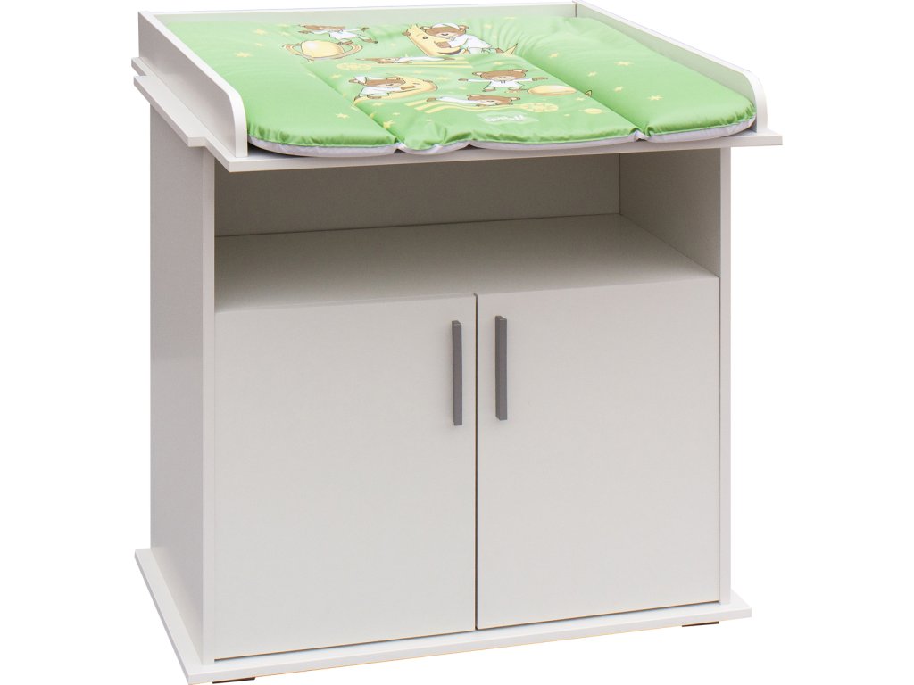 Přebalovací komoda Míša je vyrobena z laminátu v bílé barvě. Komoda má jednu otevřenou přihrádku a skříňku s policí. U komody lze jednoduše sundat desku na přebalování a nadále používat jen jako komodu i ve studentském pokojíčku. Přebalovací podložka z PVC není v ceně.
