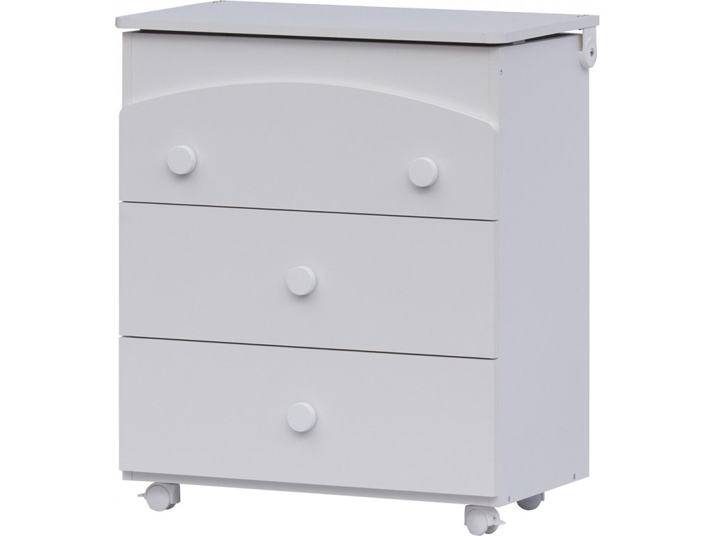 Komoda je také opatřena plastovými kolečky, dvě jsou s brzdou. Komodu lze tedy velmi jednoduše přesouvat dle potřeby. Horní deska nad vaničkou je připevněna na otočných kloubech pro snadné zvedání. Komoda je dále opatřena třemi velkými šuplíky.