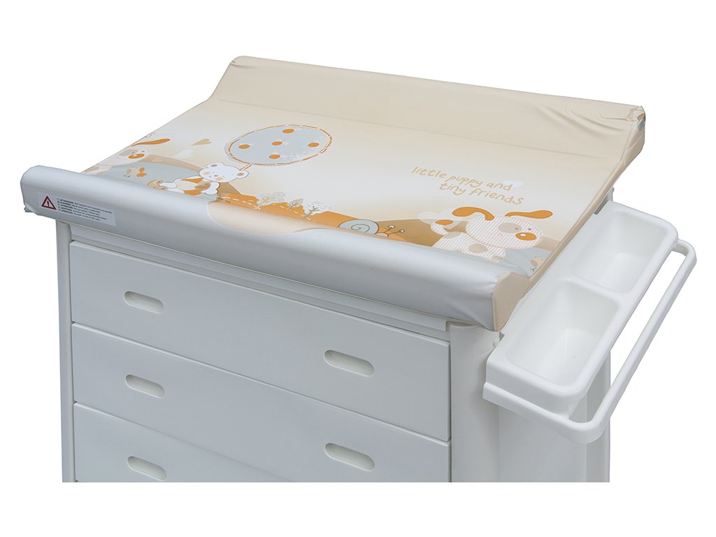 Přebalování: tvarovaná přebalovací podložka s pevnou deskou. Povrch podložky je vyroben z bezpečného PVC nejvyšší kvality, neobsahující ftaláty, je omyvatelná a lehce se udržuje v čistotě.