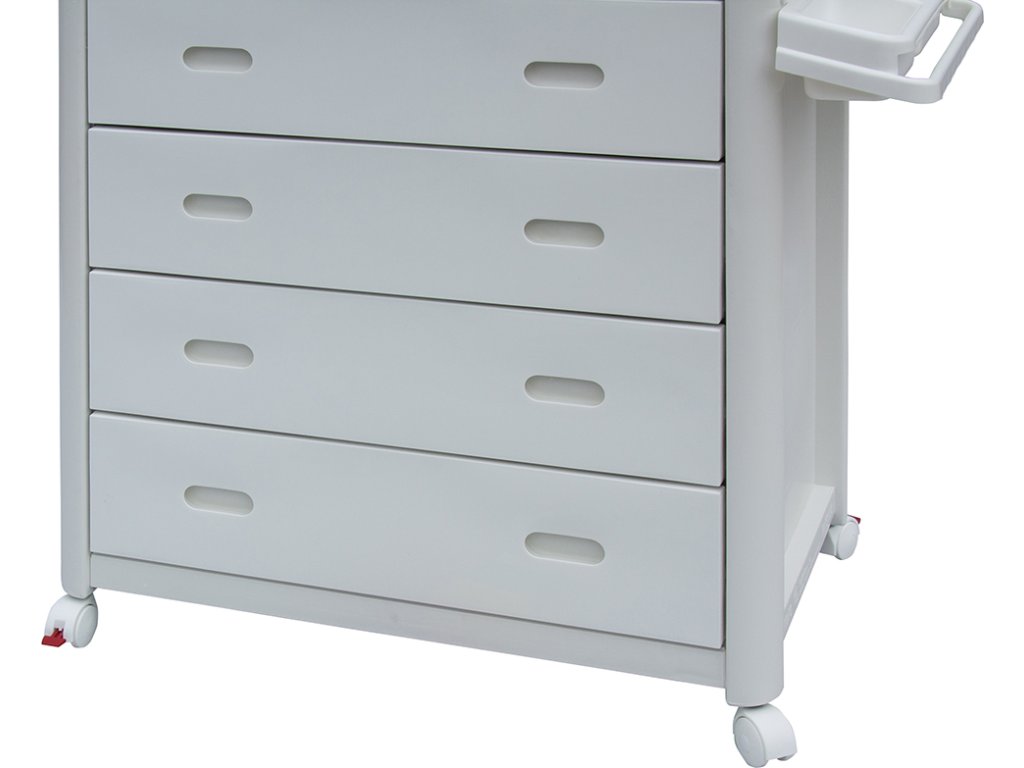 Zásuvky: 4 prostorné zásuvky. První zásuvka je téměr celá vyplněna anatomickou vaničkou.