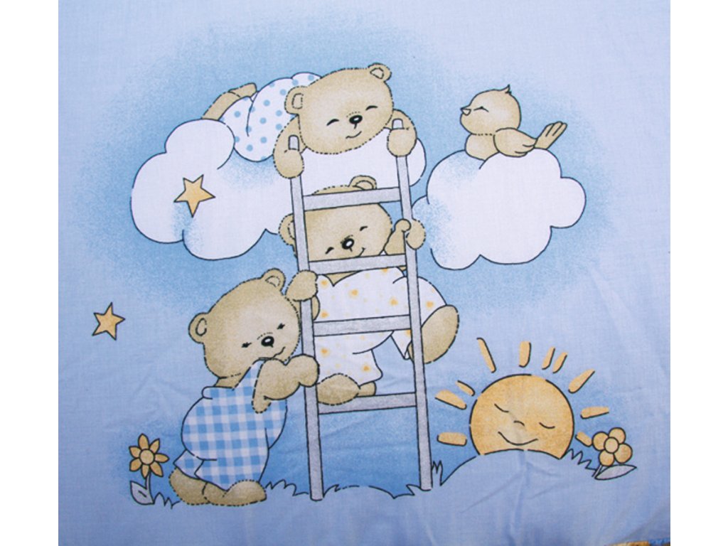 Souprava obsahuje: povlečení na peřinku 90 x 120 cm, povlečení na polštář 60 x 40 cm, ochranný límec okolo 2/3 postýlky a nebesa. Tato souprava je vhodná i do postýlek 140 x 70cm.