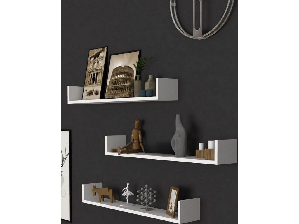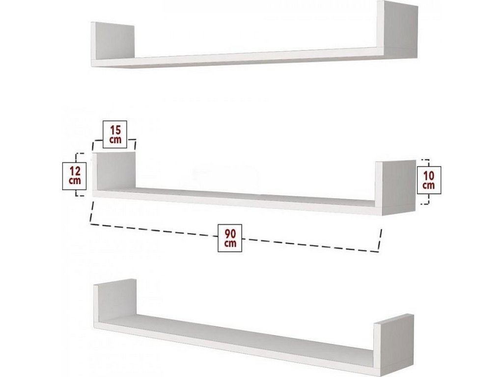Sada závěsných polic (3 ks), které jsou vyrobeny z kvalitní desky LTD tl. 18 mm v barevném provedení bílá. Dodáváme v demontovaném stavu.Doplňkové parametry