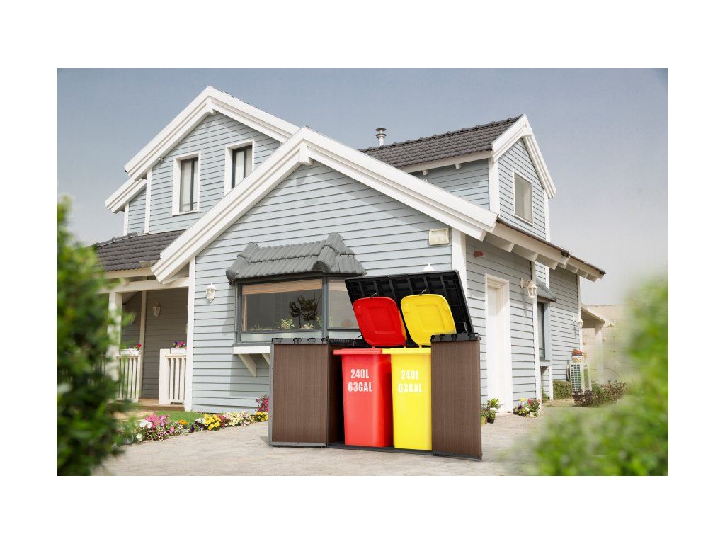 Ke snadné manipulaci a otevírání víka slouží hydraulické písty, součástí balení jsou i řetízky pro případné uchycení vík popelnic. Snadný přístup poskytují široké dvojité přední dveře.