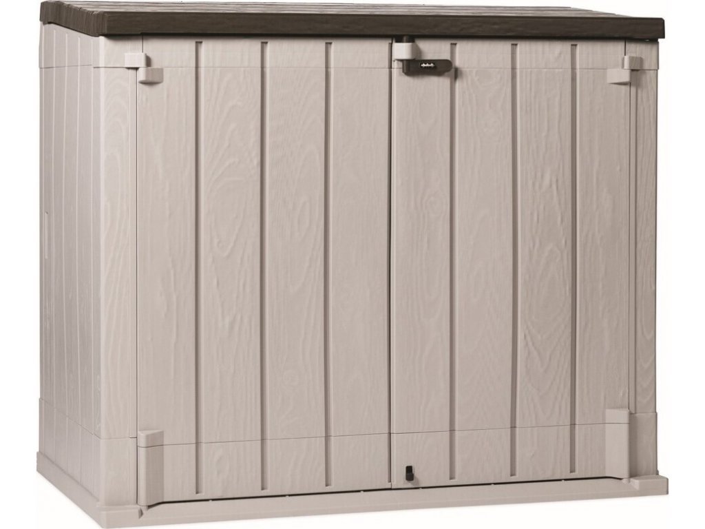 Eleganci dodává její imitace dřevěného povrchu, která je doplněna barevným provedením béžových stěn a hnědého víka, čímž se skříň stává nejen praktickým prvkem, ale také stylovým doplňkem Vaší zahrady.