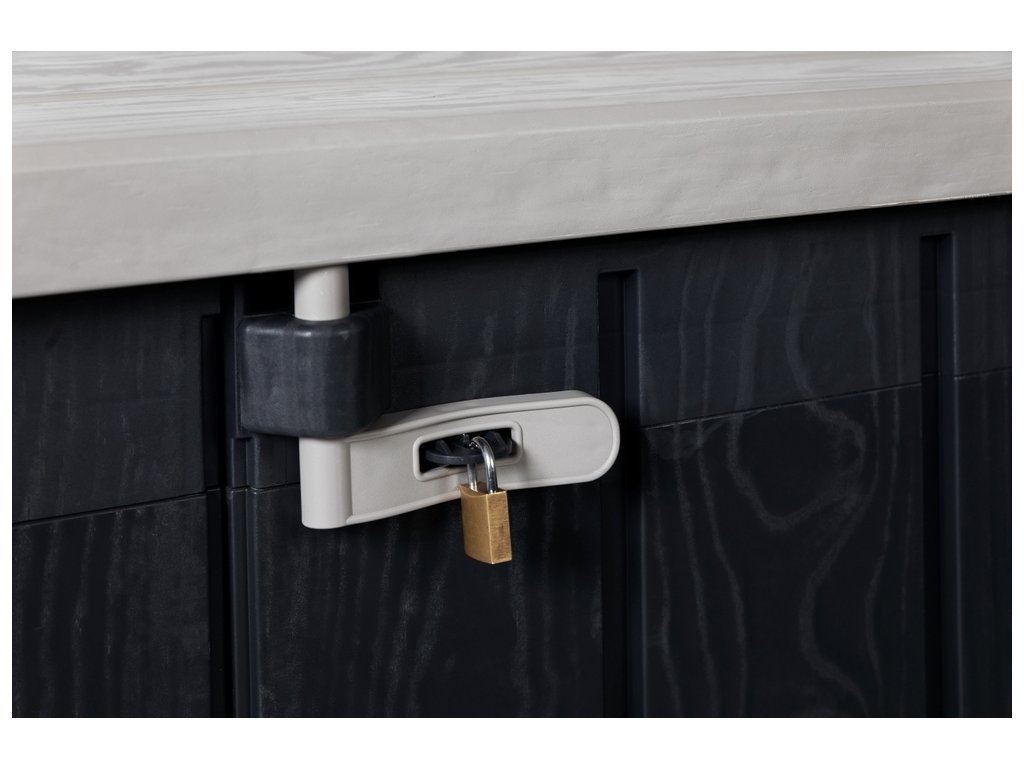 Tato skříň není pouze praktická, ale také odolná. Vyrobená z recyklovaného plastu, odolává nejen UV záření, ale také různým povětrnostním vlivům, což z ní činí dokonalého partnera pro Vaši zahradu. S možností uzamykání navíc můžete mít jistotu, že Vaše cennosti jsou v bezpečí.