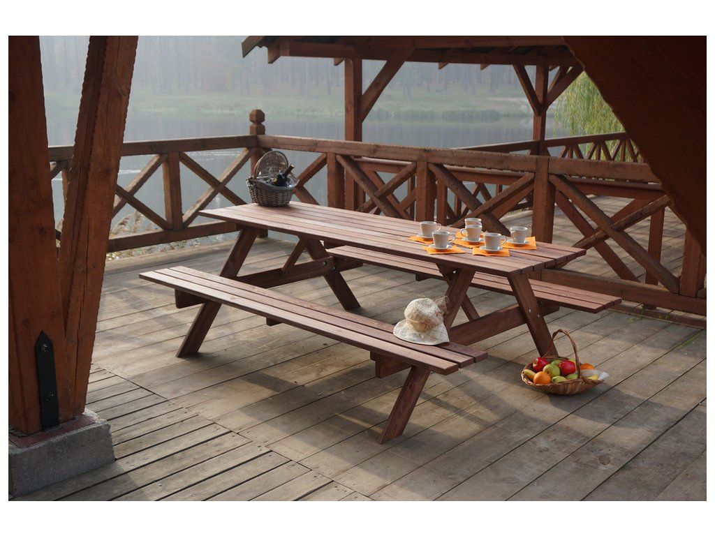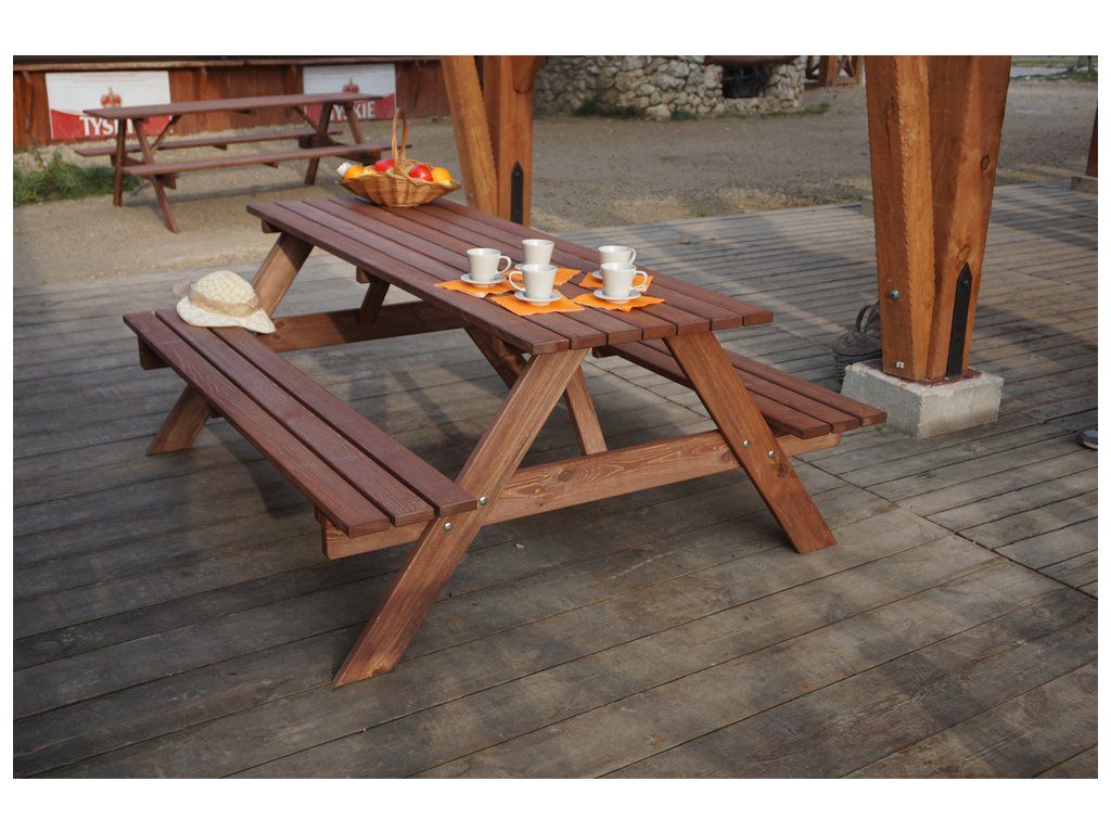 PIKNIK zahradní set dřevěný - 200 cm - mořený