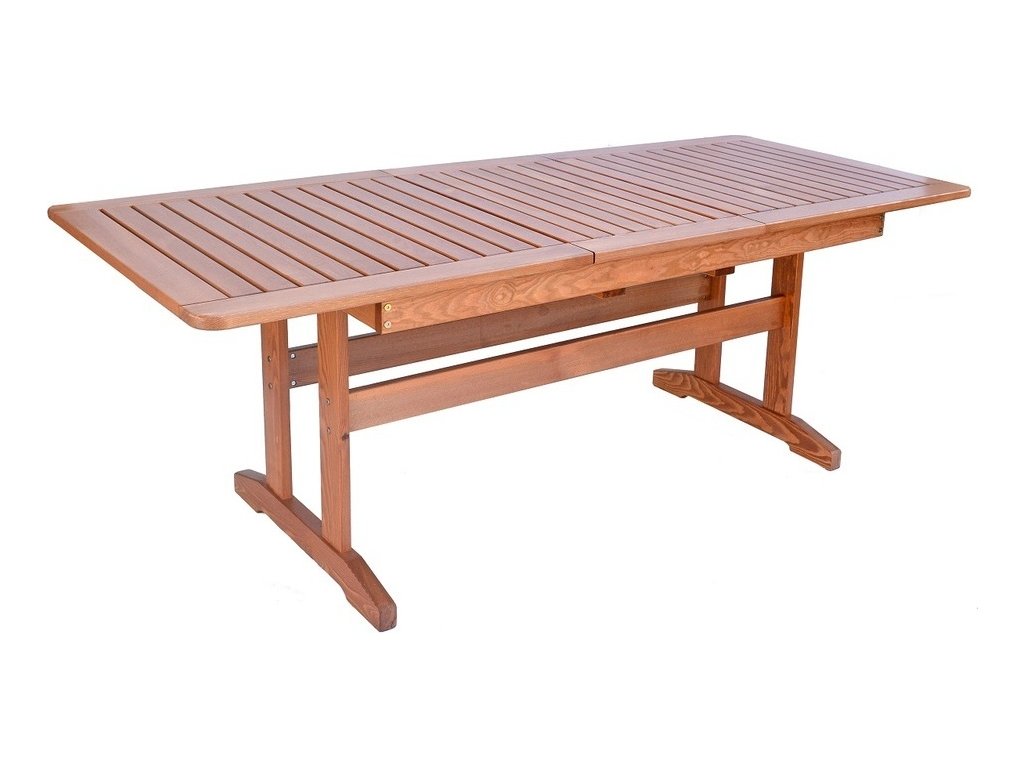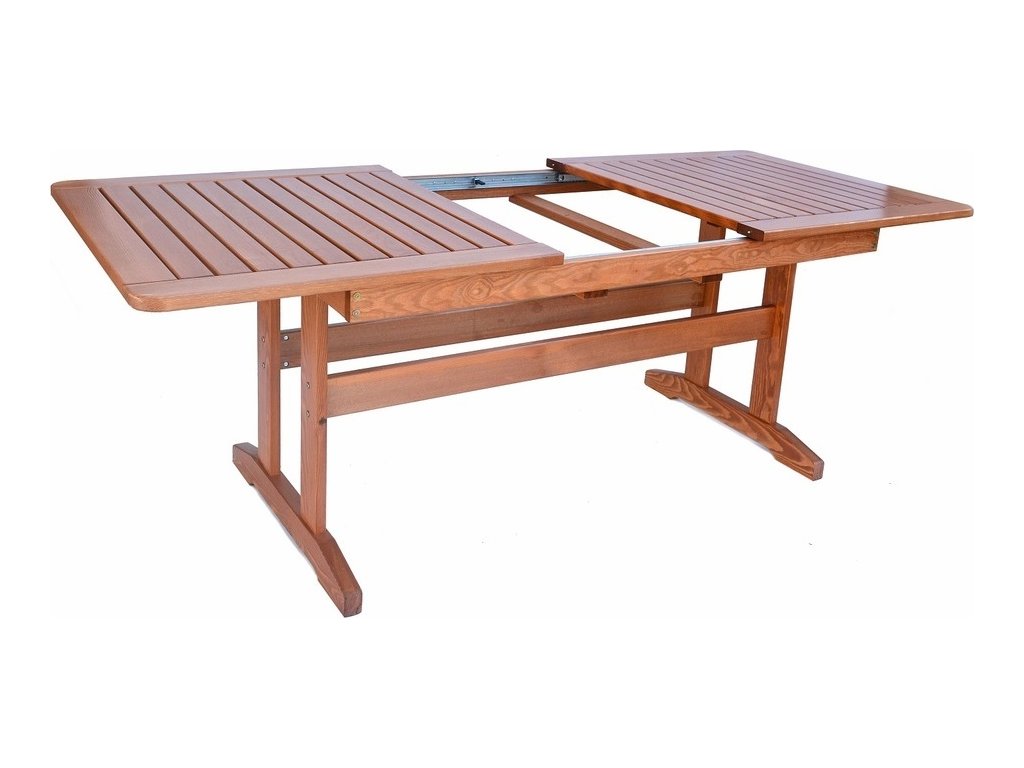 Kvalitní rozkládací stůl z lakovaného borovicového dřeva.