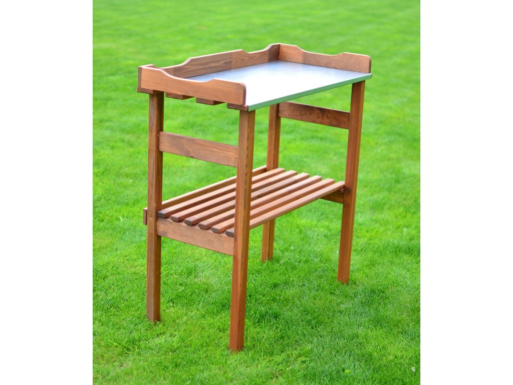 Díky kovové desce je stolek ideálním řešením pro výsadbu a přesazování rostlin - jednoduchá údržba a stálý materiál.