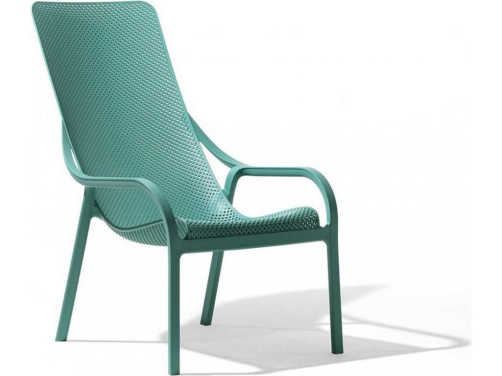 Venkovní křeslo NET LOUNGE zprostředkovává pocit pohody už jen při pohledu na něj. Velkorysé v sedu, má obepínající tvar s vlnitým profilem. Křeslo je vybaveno protiskluzovými nožičkami a sponami pro upevnění osušky. Materiál polypropylen fg zajišťuje odolnost vůči UV záření a velice snadnou údržbu.