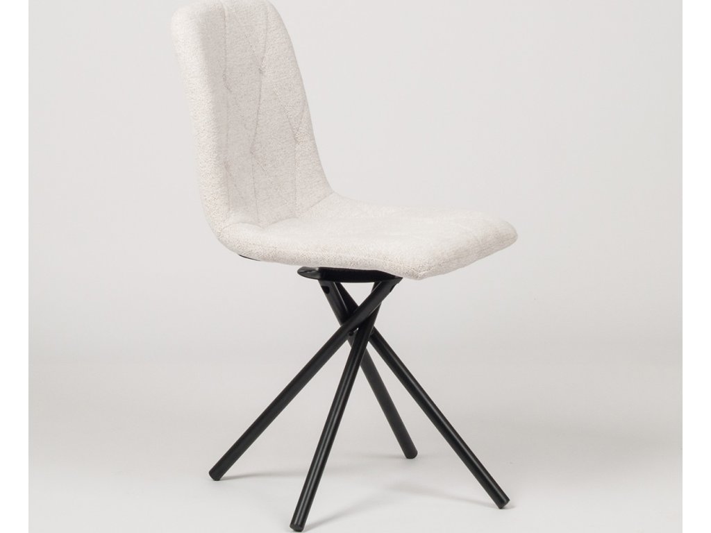 Celočalouněná jídelní židle na otočné kovové podnoži. Dodáváno v demontu.