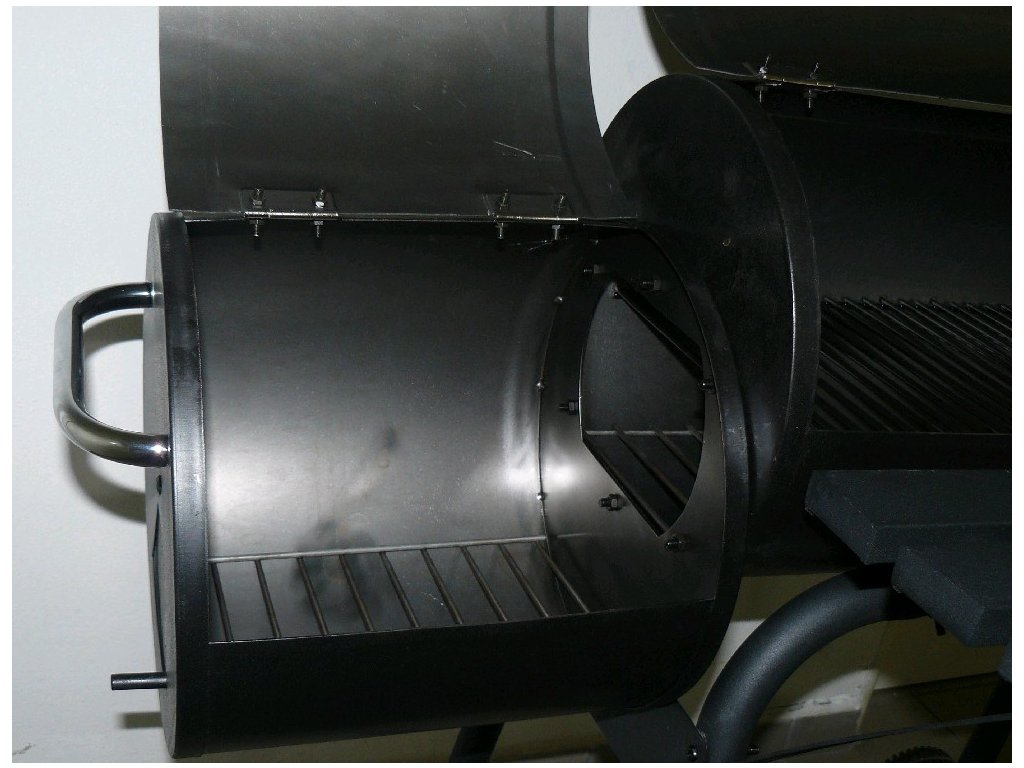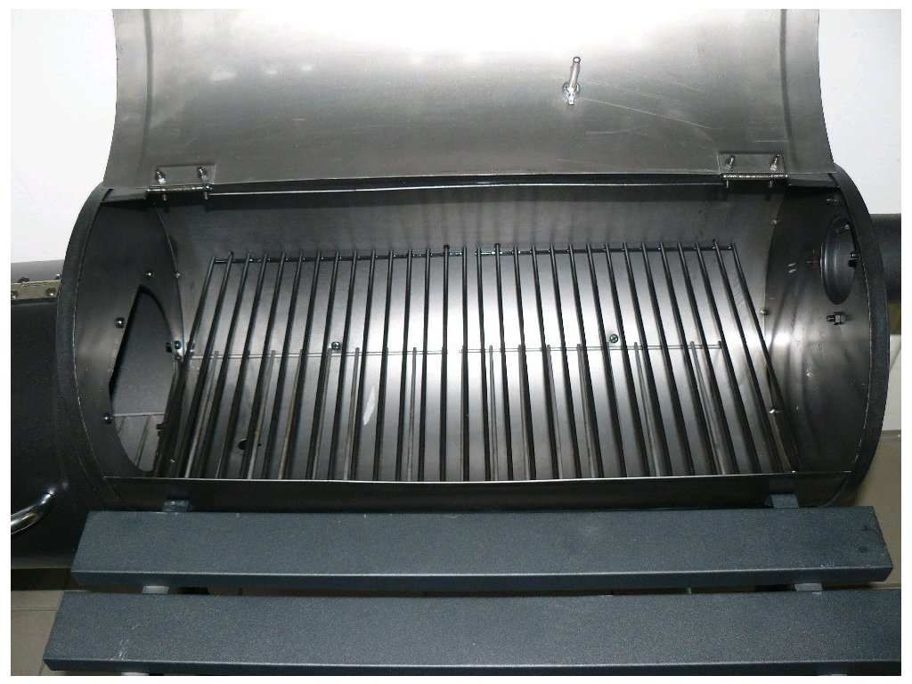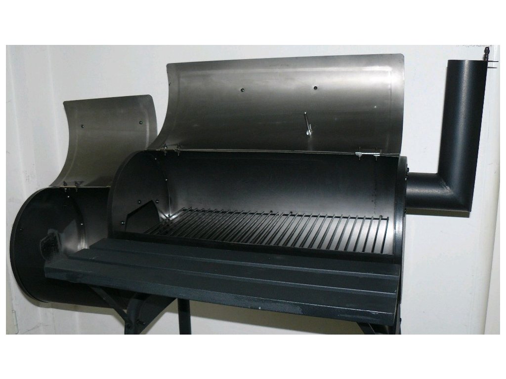 Gril je zhotoven z 1.0 mm silného plechu žáruvzdorně ošetřeného černou barvou. Teploměr je vestavěn ve víku velkého grilu. Kouřovod je opatřen krytem, který slouží zároveň i jako regulace.