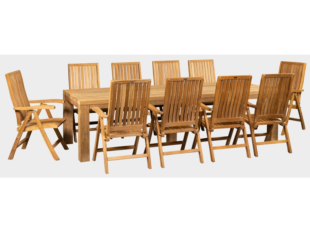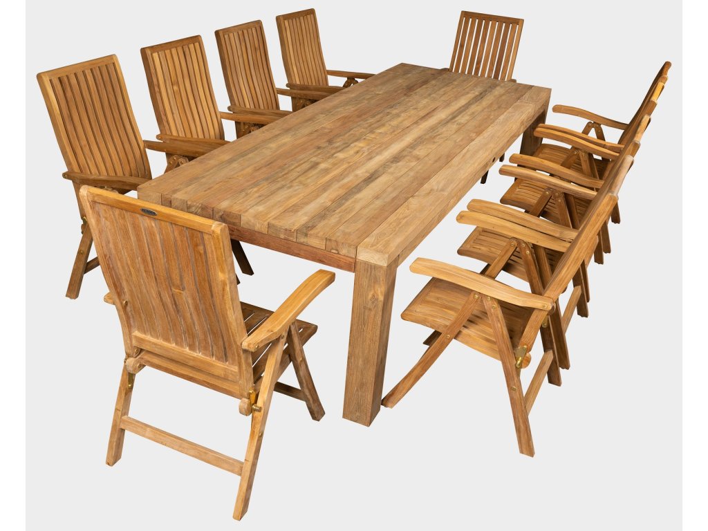 Největší a jediný stůl s 5 nohami z naší nabídky FLOSS RECYKL 300x110cm (deska z prken) vyrobený z kvalitního recyklovaného teaku