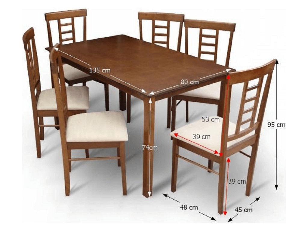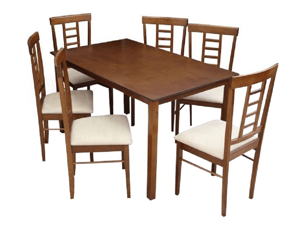 Jídelní komplet 1 + 6 OLEG NEW Materiál: dřevo / látka Oděruodolnost textilie podle testu Martindale: 80 000 oděre Barva: ořech / béžová Rozměry stůl (ŠxHxV): 135x80x74 cm Rozměry židle (ŠxHxV): 45x48x95 cm Výška sedu: 43 cm Nosnost židle 100 kg Nosnost stola: 100 kg Dodávané v demontu.