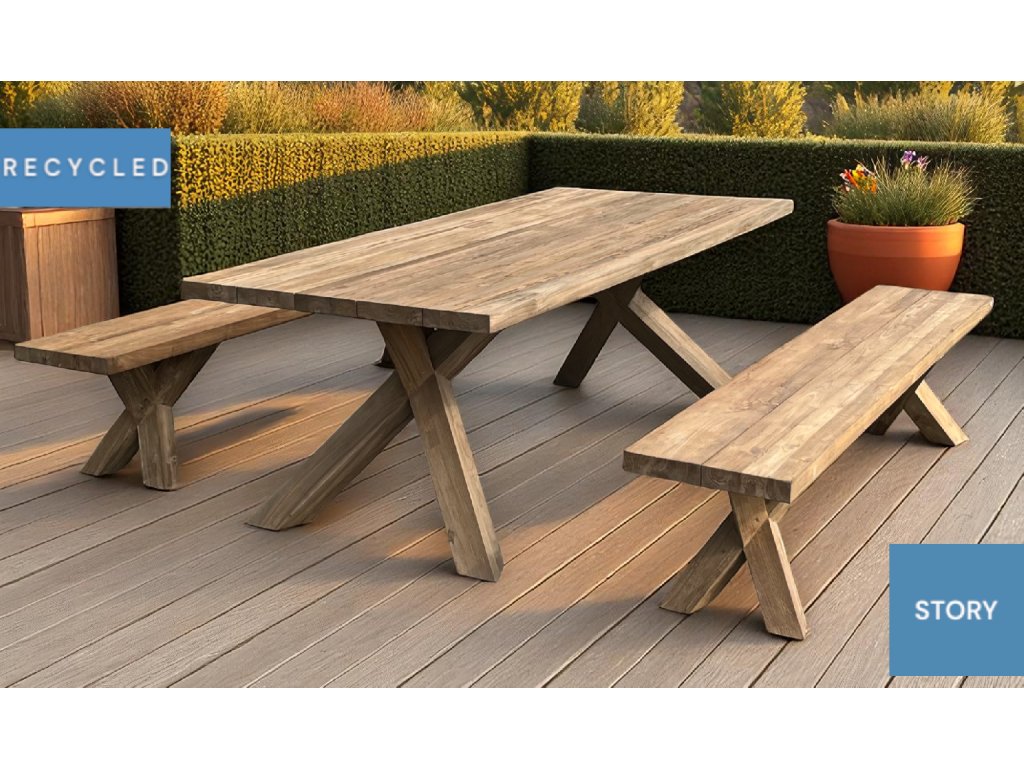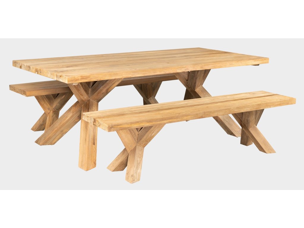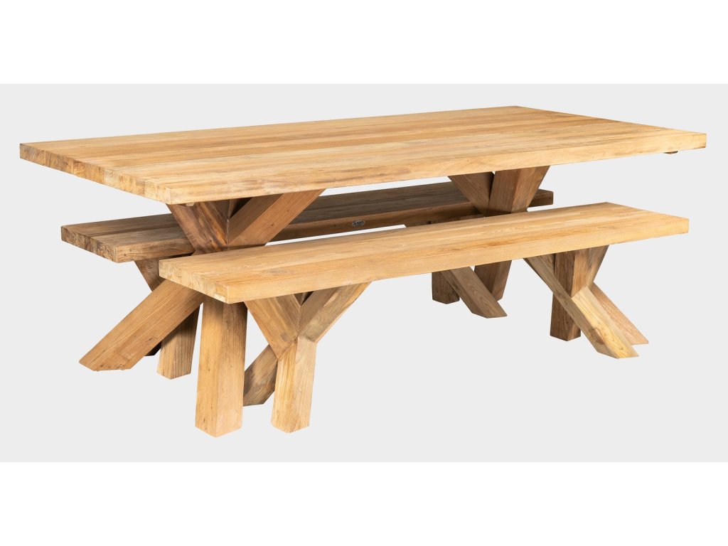 Masivní stůl SPIDER RECYCLE 220x100cm (plná deska,nebo deska z prken) vyrobený z kvalitního recyklovaného teaku v kombinaci 2x lavice SPIDER.