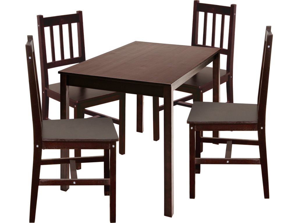 jídelní stůl 8848H a 4 jídelní židle 869H stůl i židle materiál masiv borovice, barevné provedení hnědý lak výška sedu židle 45 cm rozměr stolu (š/h/v): 118 × 75 × 73 cm rozměr židle (š/h/v): 41 × 42 × 91 cm