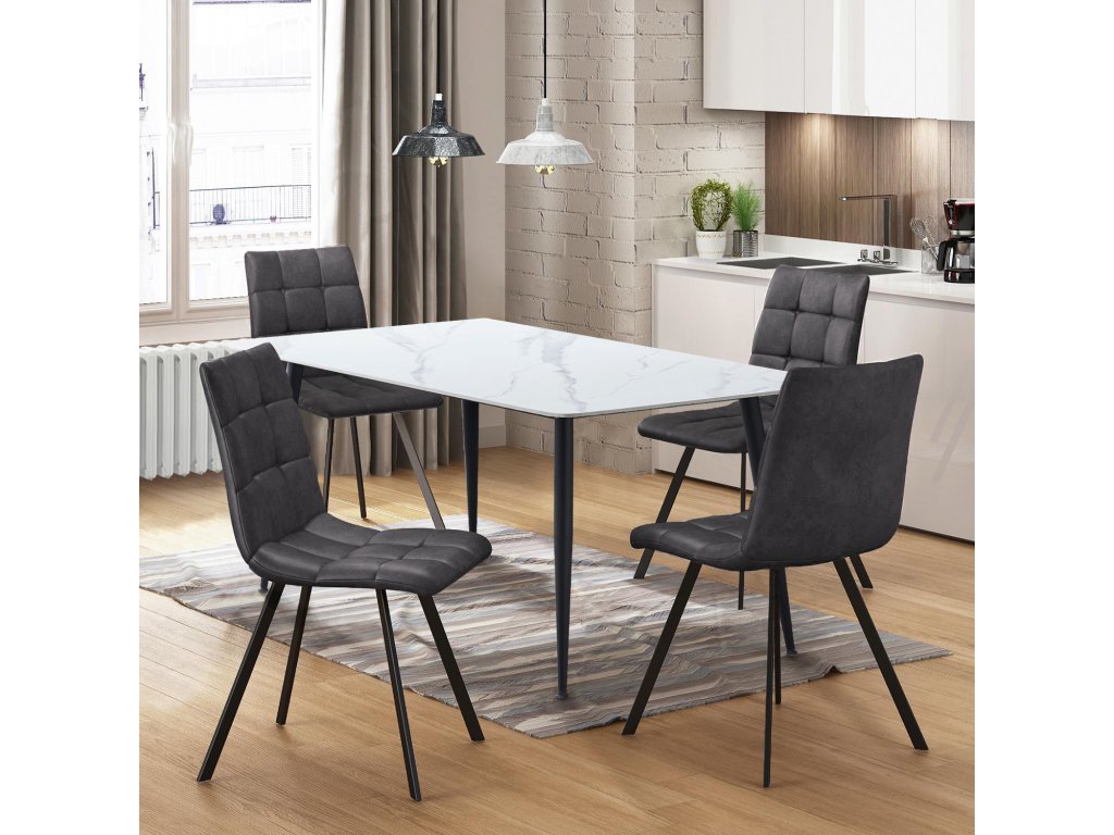 jídelní stůl ADRIA 90897 a 4 jídelní židle BERGEN 4094 stůl: deska keramika, barevné provedení imitace mramoru kovová konstrukce, barevné provedení černá židle: sametový potah, barevné provedení šedá kovová konstrukce, barevné provedení černá výška sedu židle 51 cm rozměr stolu (š/h/v) 140 × 70 × 75 cm rozměr židle (š/h/v) 56 × 44 × 86 cm