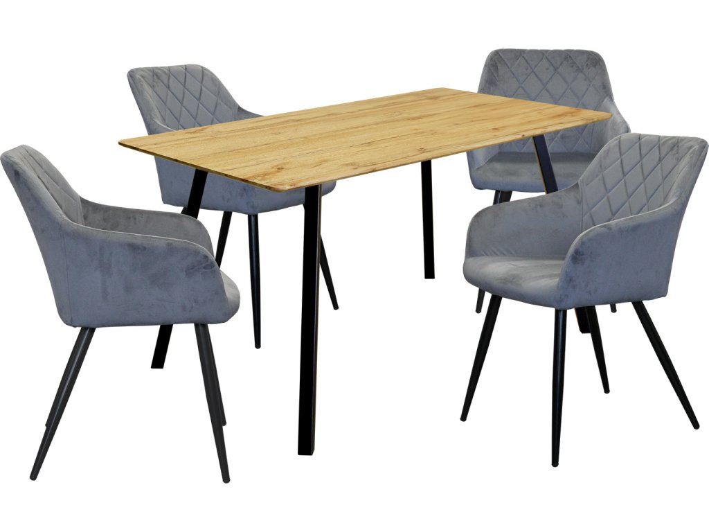 Jídelní stůl BERGEN dub + 4 židle DIAMANT šedý samet