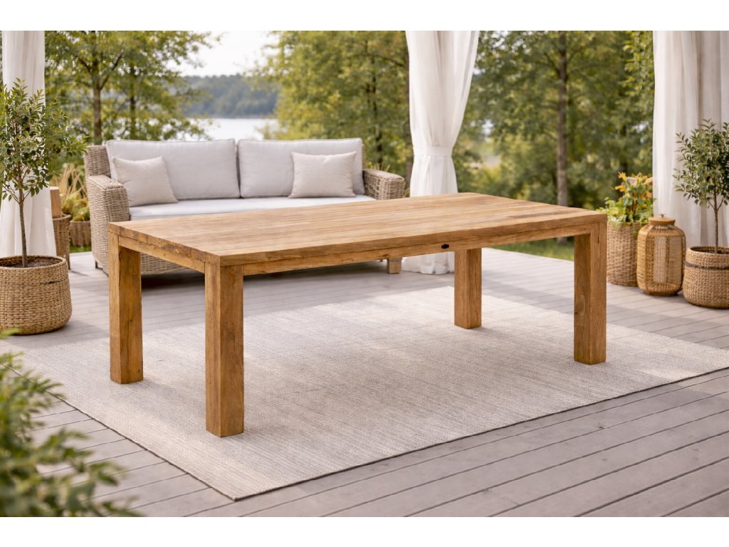 Masivní stůl FLOSS RECYCLE 220x100cm (deska z prken) vyrobený z kvalitního recyklovaného indonéského teaku.