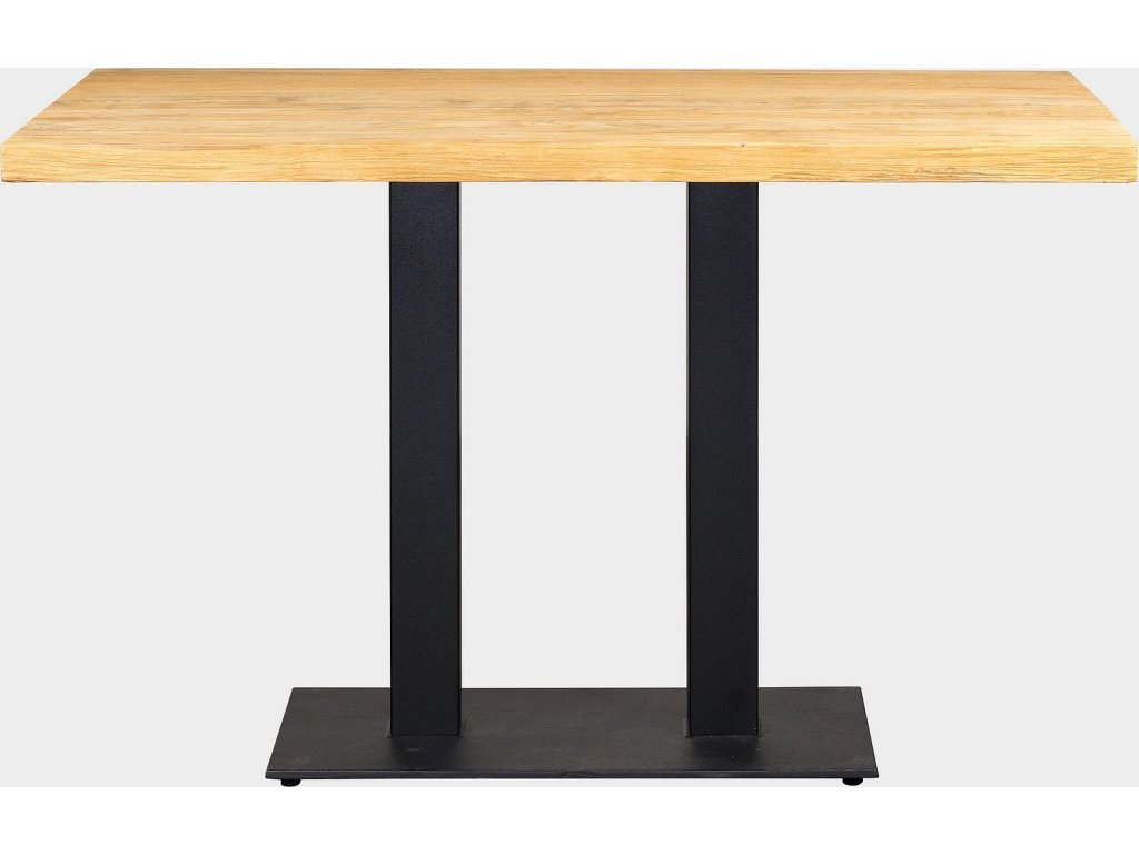 Jídelní stůl CLIFF s deskou z masivního recyklovaného teaku 120 x 80 cm a litinové podnože v černé barvě.