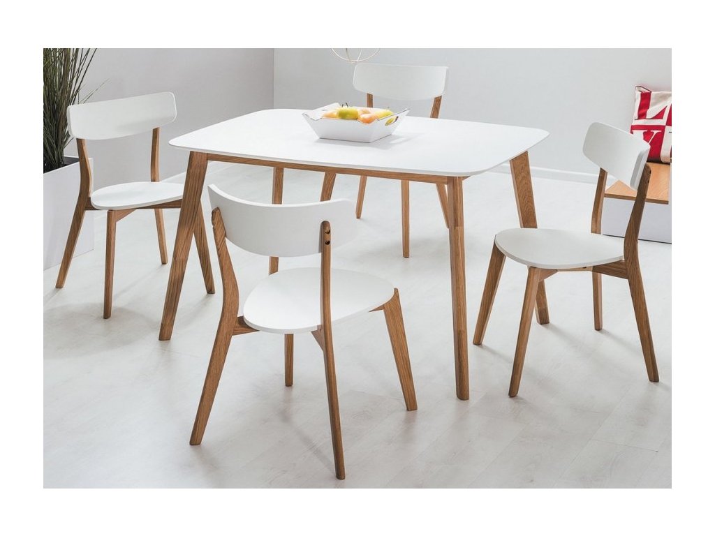Jídelní stůl ve stylu Scandinavian. Deska stolu je vyrobena z kvalitní MDF v kombinaci s přírodní dýhou v bílé barvě, nohy stolu jsou z masivního dřeva - dub. K tomuto stolu doporučujeme židle v naší nabídce. Dodáváme v demontovaném stavu.Doplňkové parametry