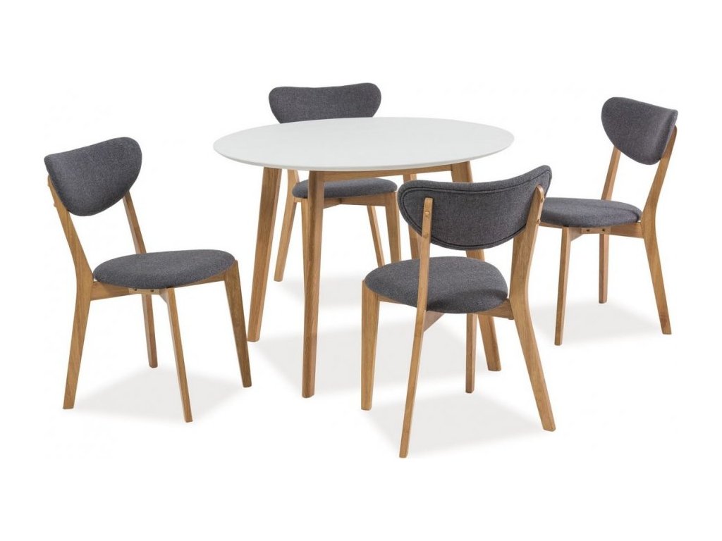 Jídelní kulatý stůl ve stylu Scandinavian. Deska stolu je vyrobena z kvalitní MDF v kombinaci s přírodní dýhou v bílé barvě, nohy stolu jsou z masivního dřeva - dub. K tomuto stolu doporučujeme židle v naší nabídce. Dodáváme v demontovaném stavu.Doplňkové parametry